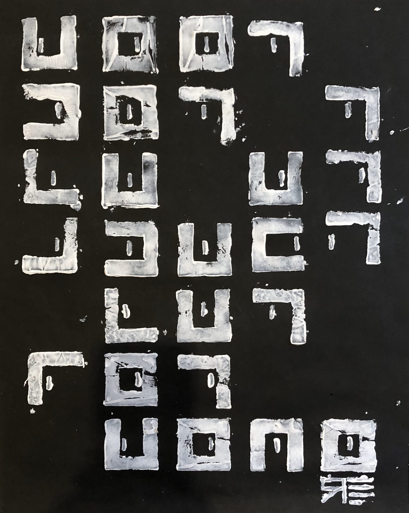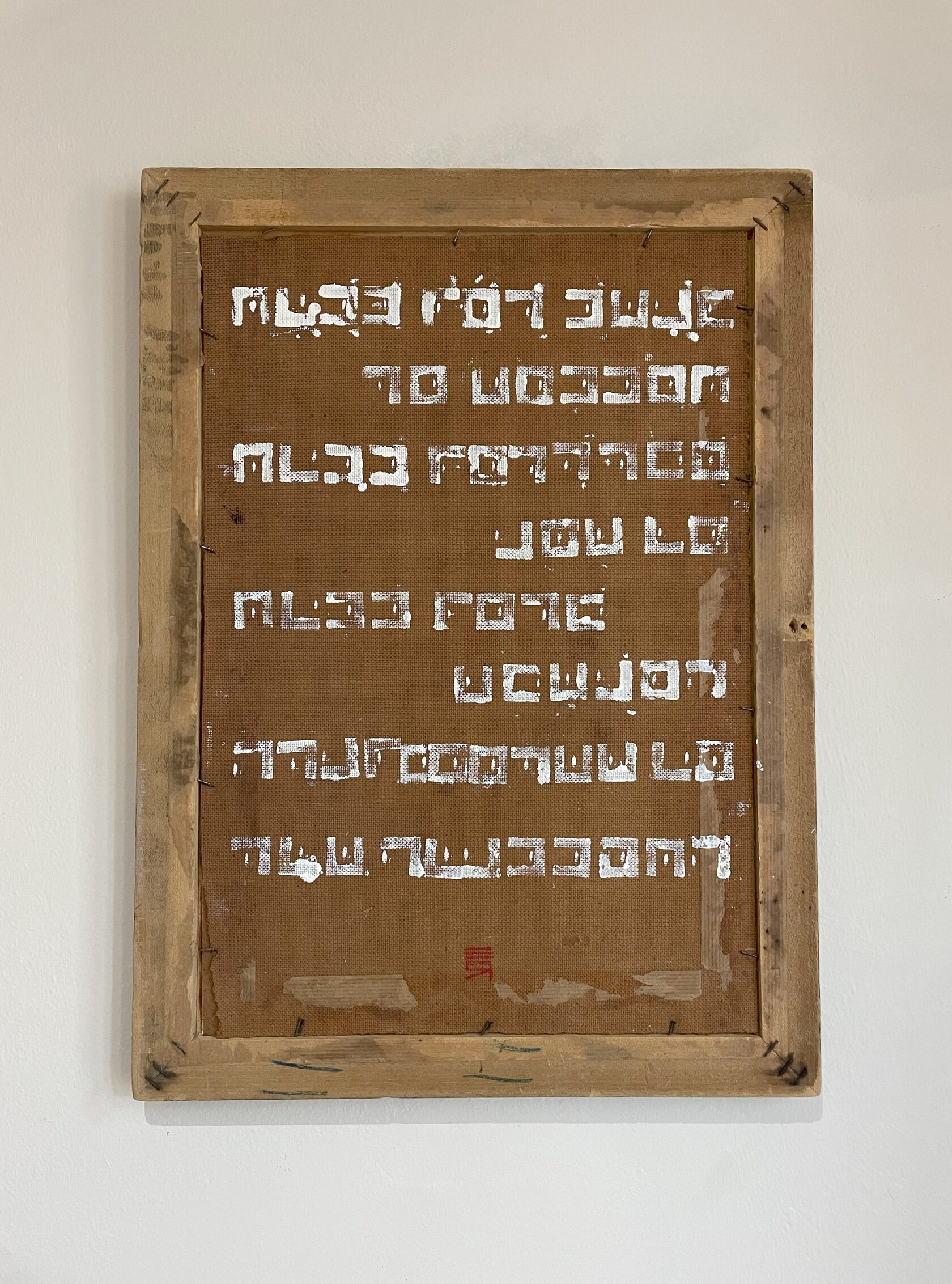 La segunda lectura de la obra se realiza tras girar el dibujo 180º, estos son los llamados ambigramas de simetría central.