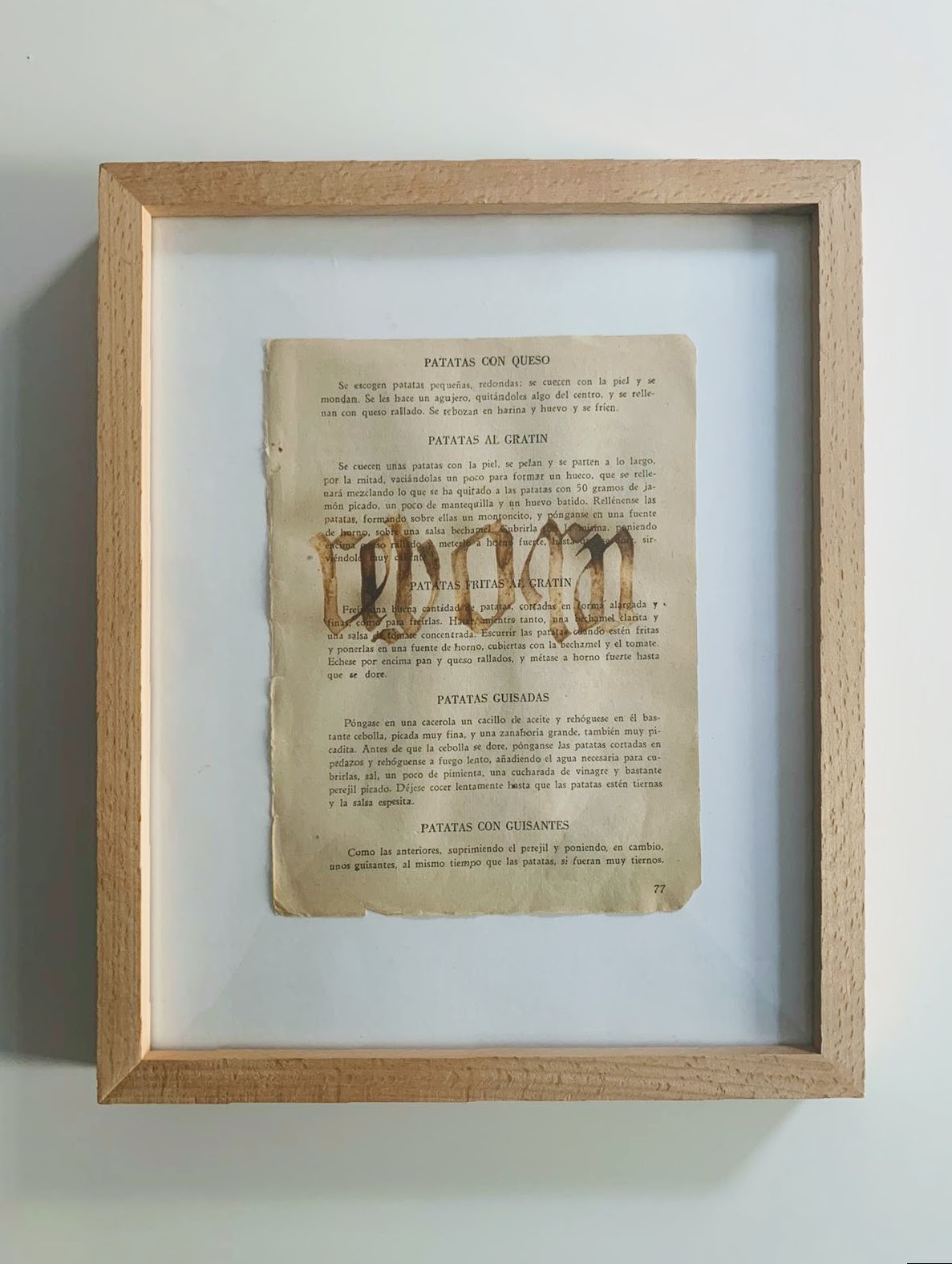 La obra está hecha sobre la hoja de un libro de recetas de platos con patatas. La patata es símbolo y mayor producto agrícola de Bielorrusia.